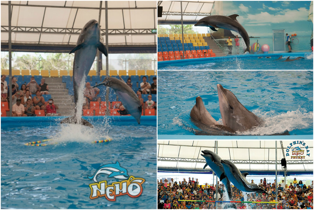 普吉岛尼莫海豚馆(Dolphins Bay Phuket)。这里,能如此近距,离的接近海豚,感受它们的可爱与奇妙。在这里您会欣赏到可爱的海豚灵活地转呼啦圈,优雅地在水中来几回跳跃,又或是调皮地藏在水里不愿出来。