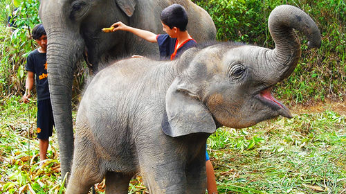 一个以大象为本的保护中心,这里没有骑大象,也没有大象表演,只有你和大象最亲密的接触,了解它们,爱护它们。在这里我们给大象制作食物/给大象洗澡/喂食大象/制作泰餐。