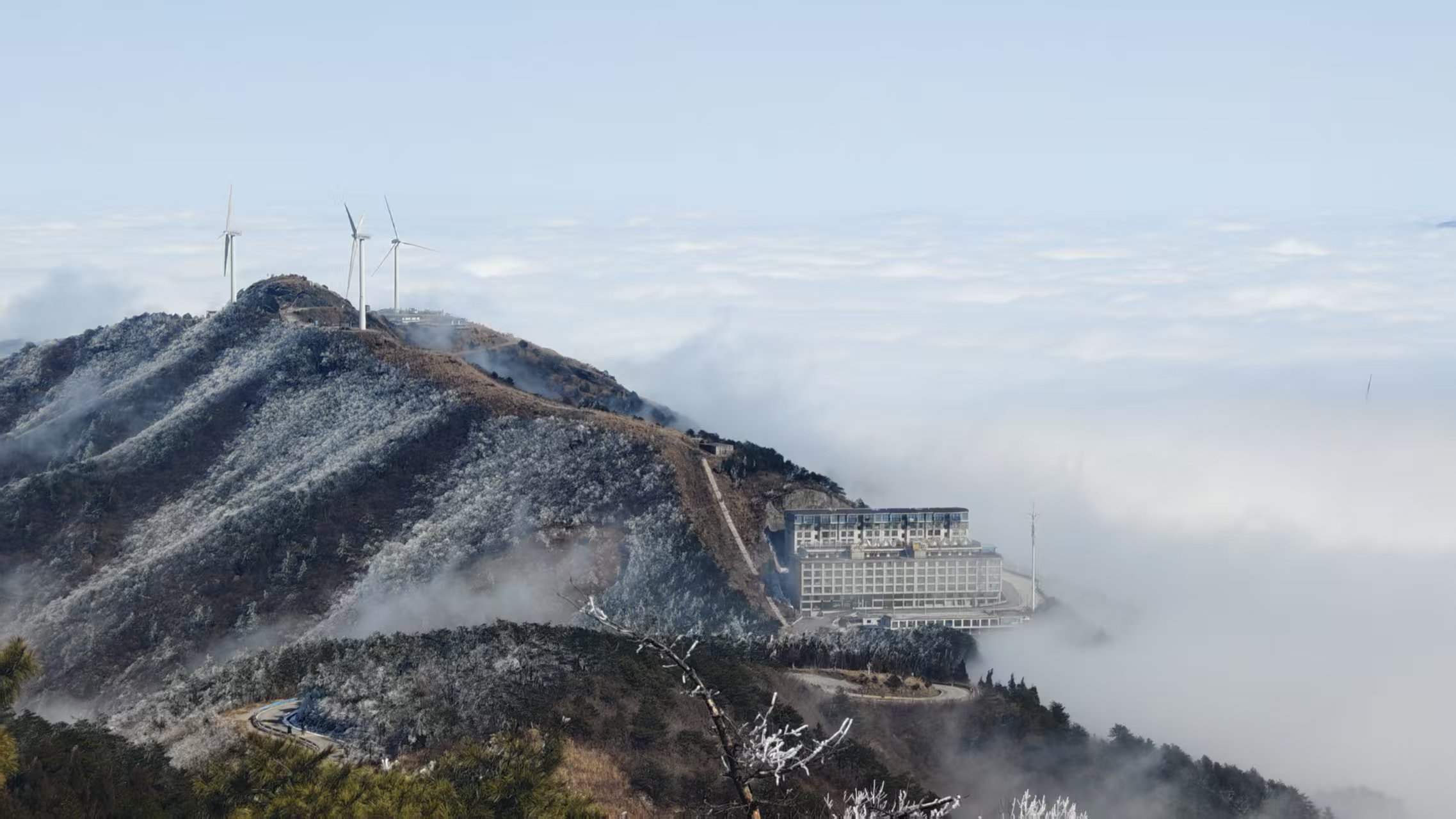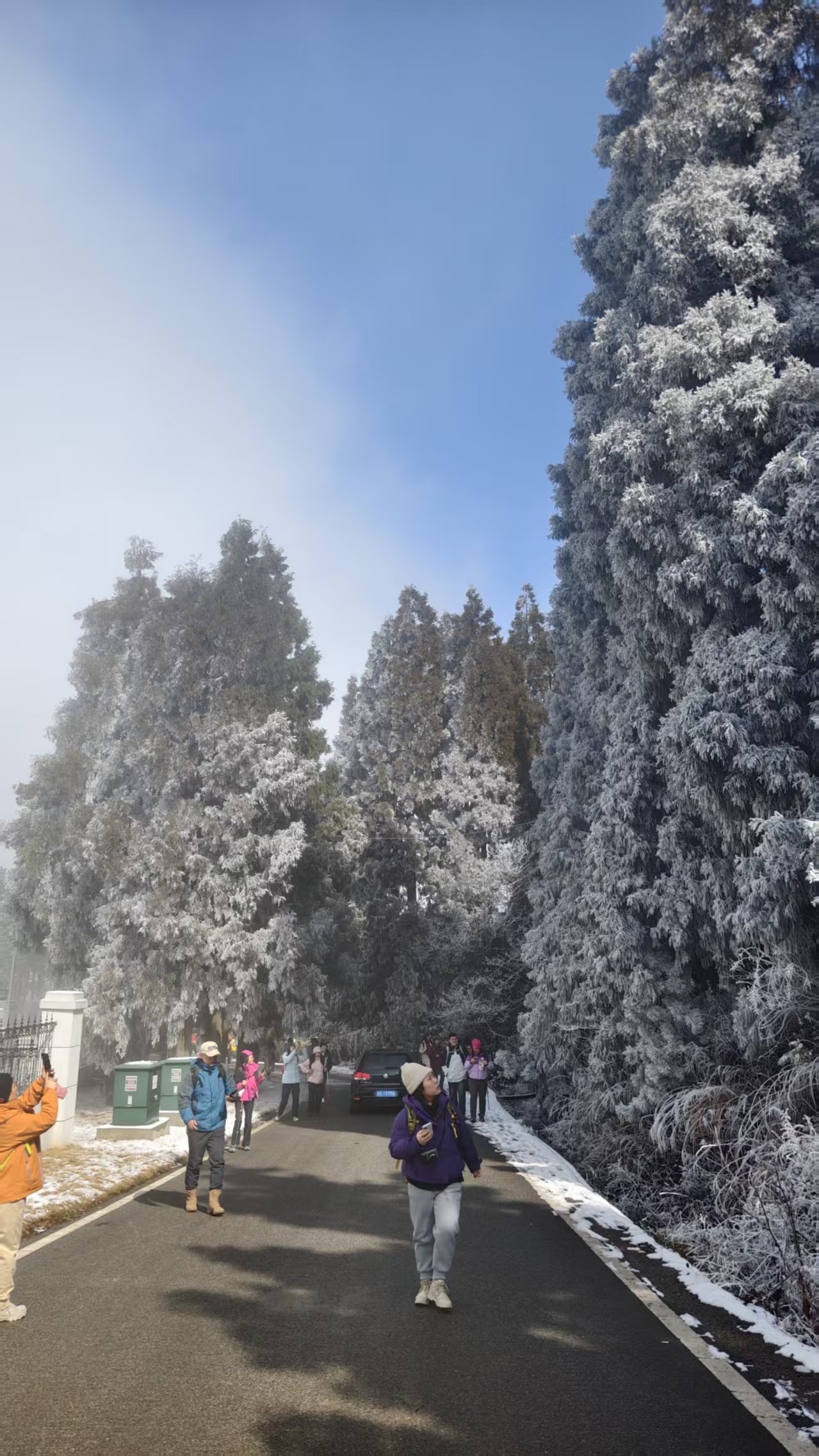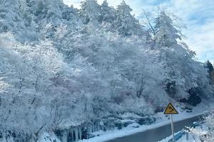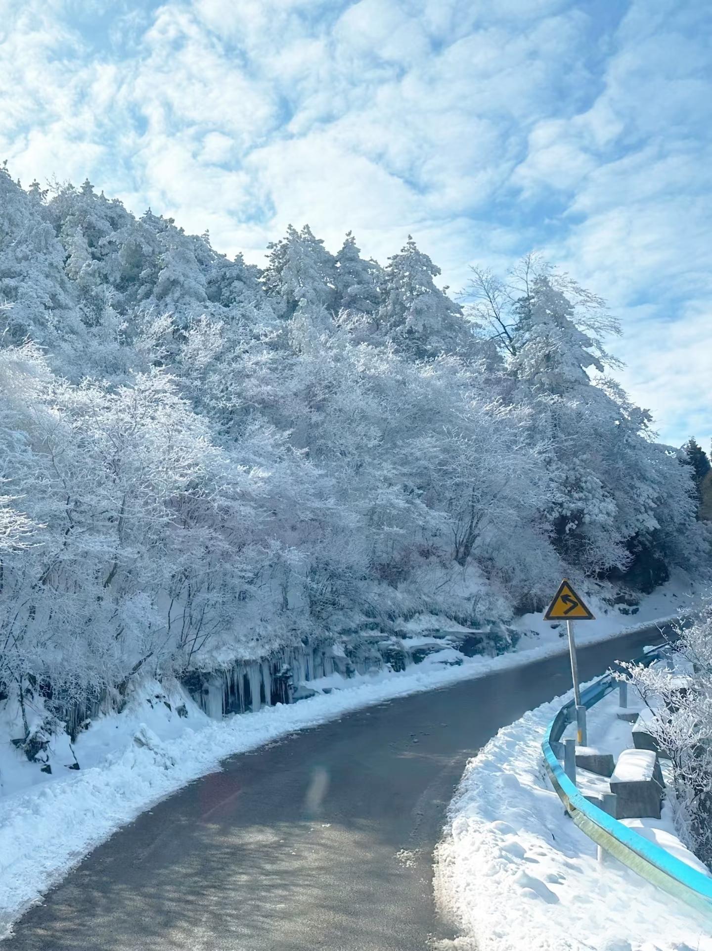 11:30 到达景区自由中餐(山上餐厅或者自带餐都行),沿着公路上铜鼓包(步行往返约3小时,也可以坐车),自由拍照打卡。俯瞰九宫山全雪景,再原路返回。