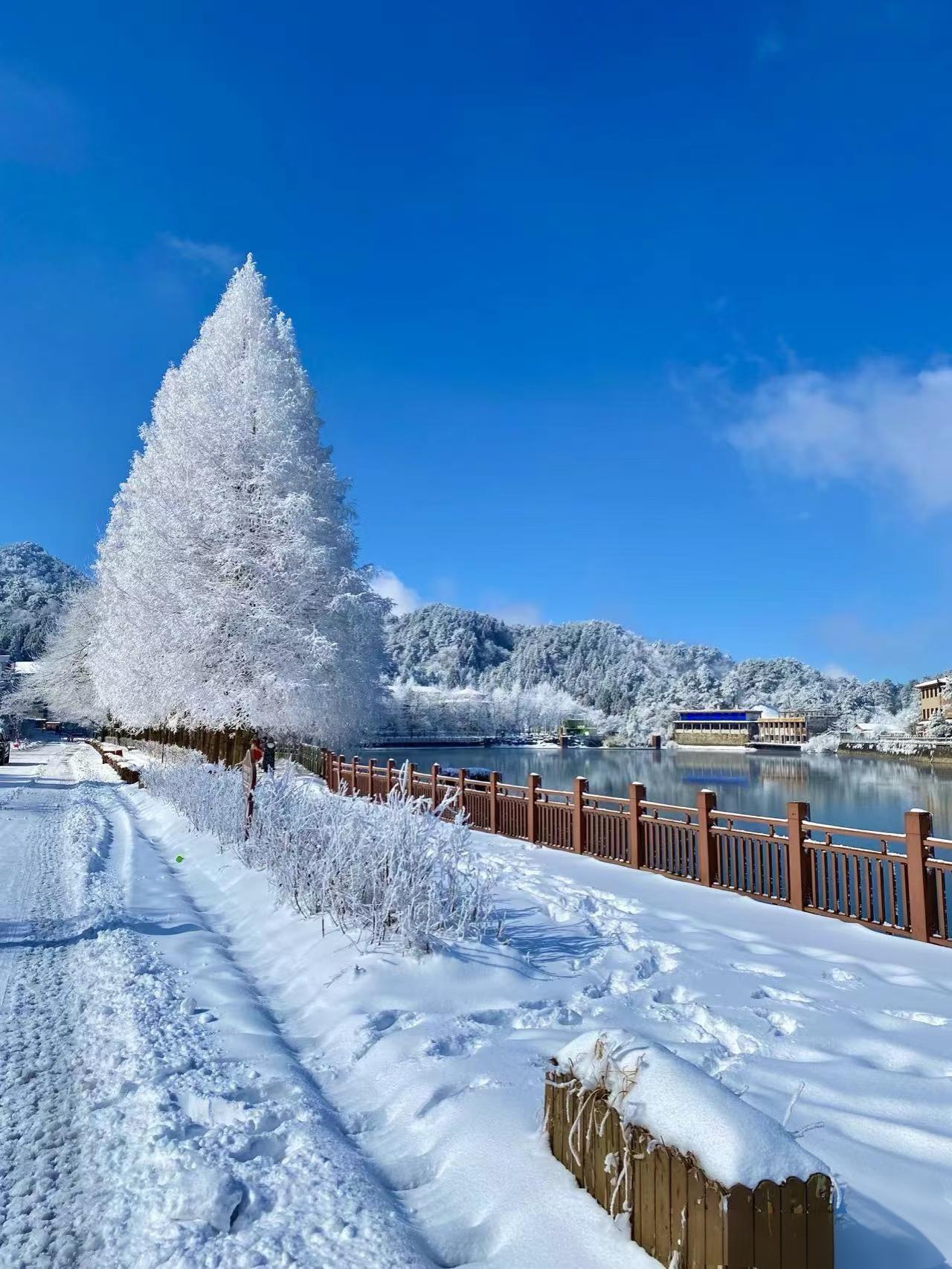 九宫山雪景如画,本周五下雪,周六雪后放晴,正好赏雪!群山银装素裹,云中湖冰封玉砌,雾凇奇观美不胜收,宛如冰雪童话世界,运气好还能看到壮美云海!
